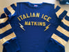 All American made Hometown Jersey by Jill Smith! This is a limited run of “ITALIAN ICE NATKINS” jerseys made by Jill out in Joshua Tree specifically for Nicole’s fans. BLUE AND GOLD cotton wool with gold Felt lettering. Vintage look and cut. So soft you’ll wear it forever.