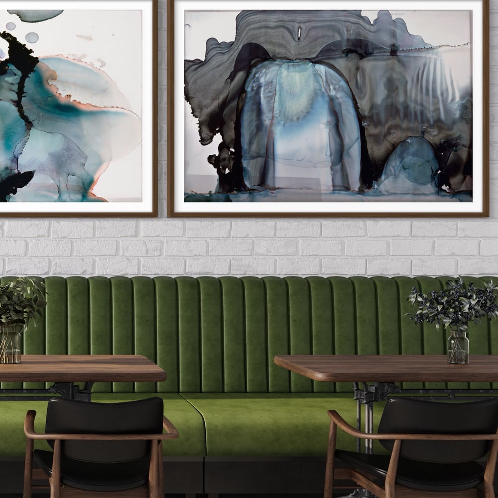 This limited edition drop is for Nicole's "Raymond Finds Waterfalls," which is alcohol ink on exposed dark room paper.